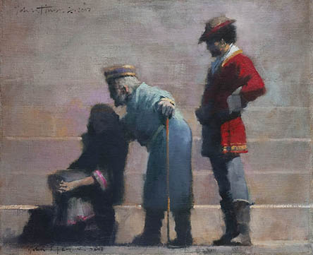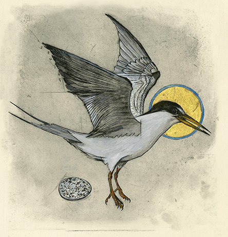 Alexis Deacon has adapted Oscar Wilde’s text for The Selfish Giant and also illustrated it in his typical elegant style. It was published by Red Fox (Random House) in 2013 and we have a small handful of the original paintings for sale, including this one, ‘We Must Ask Hail on a Visit’.