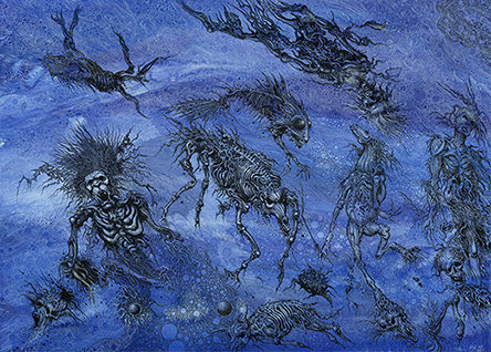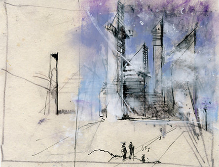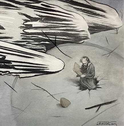 Alexis Deacon has adapted Oscar Wilde’s text for The Selfish Giant and also illustrated it in his typical elegant style. It was published by Red Fox (Random House) in 2013 and we have a small handful of the original paintings for sale, including this one, ‘We Must Ask Hail on a Visit’.